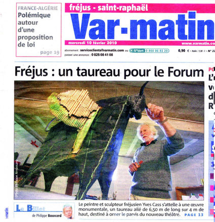 2009 – JUBILE 30 mai 2009 « galerie BARTOUX » HONFLEUR Expo « MINIATURES » « LA GALERIE » Fréjus Réalisation d’une sculpture monumentale « Le Taureau Ailé » Parvis de l’Opéra-Théâtre du FORUM, à FREJUS